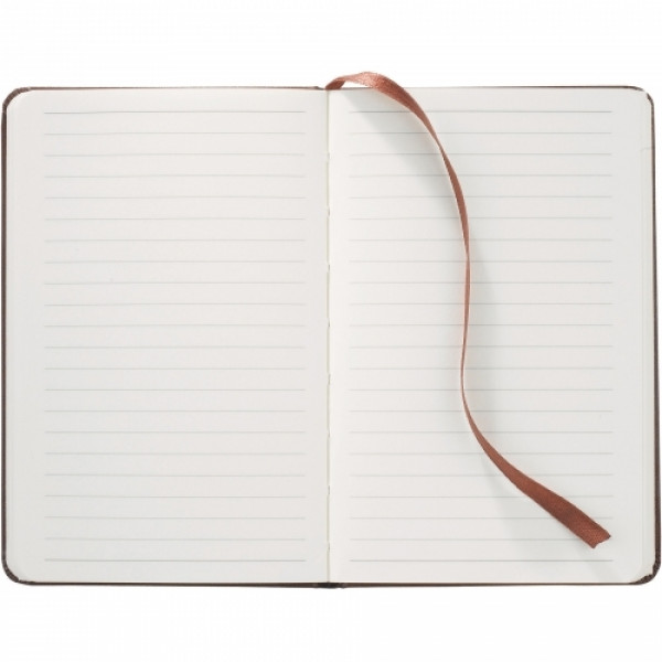 ::Hard cover, bound journal. ::Built-in elastic closure. ::Ribbon page marker. ::Expandable accordion pocket. ::Includes 80 sheets of cream lined paper. ::Please note: When laser engraving this item, the color of the imprint may vary.