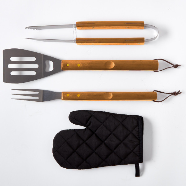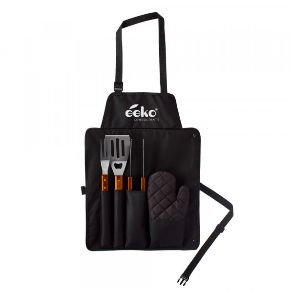 Let them know who's king of the grill with our BBQ Grill Apron and accessories. The BBQ Grill Apron puts an end to overcooked burgers by keeping all of your utensils in one convenient place, so there's no more fumbling around for a spatula when it comes time to flip. With it's multiple pockets, this apron can hold a spatula, fork, tongs, and gloves—all included! Made from high quality recycled materials, this innovative apron keeps your hands free and grill station organized, so you can get it right every time.