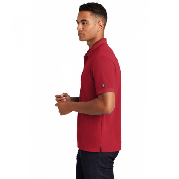 Stay-cool wicking technology OGIO jacquard neck tape Flat knit collar and rib knit cuffs OGIO heat transfer label for tag-free comfort Triple-needle shoulders and hem 3-button placket with OGIO dyed-to-match buttons Set-in, open hem sleeves OGIO badge on left sleeve Side vents.Details