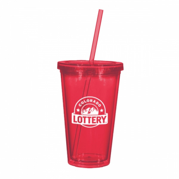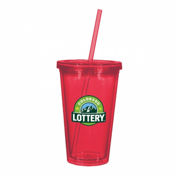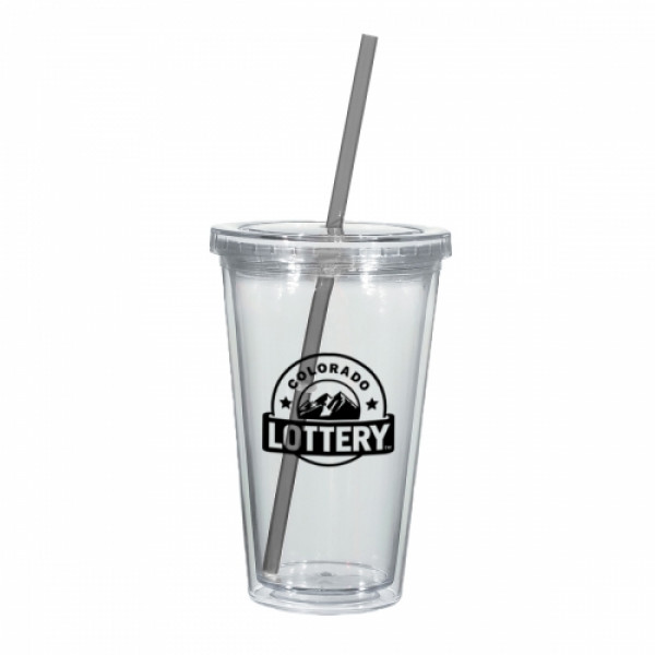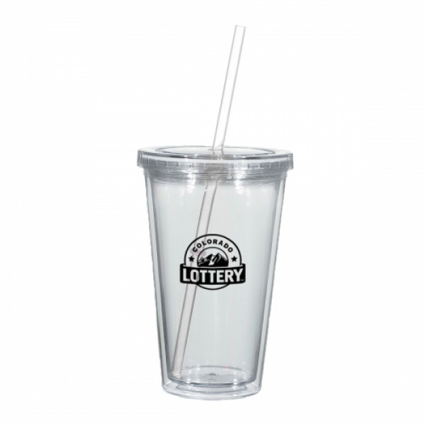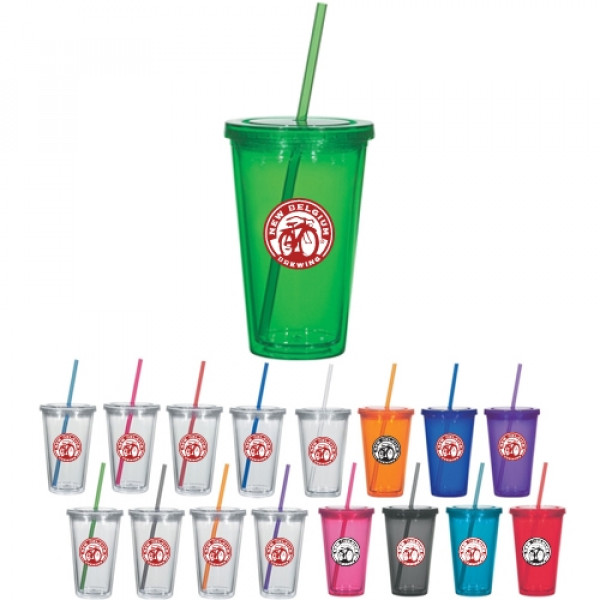 Double Wall Acrylic Tumbler with Straw - 16 oz.