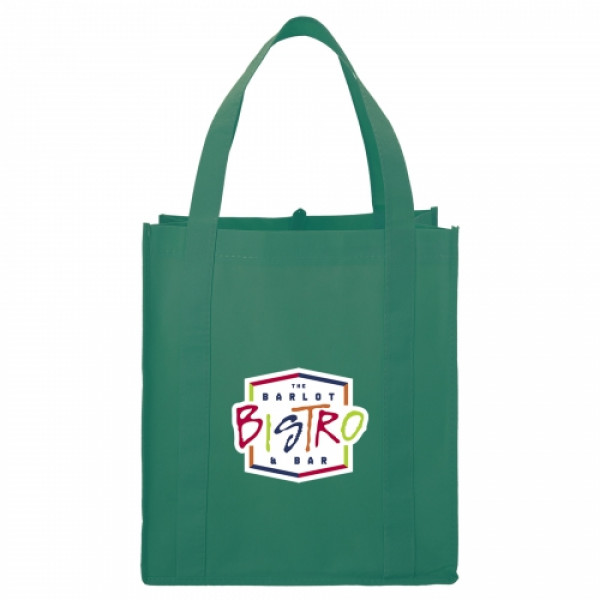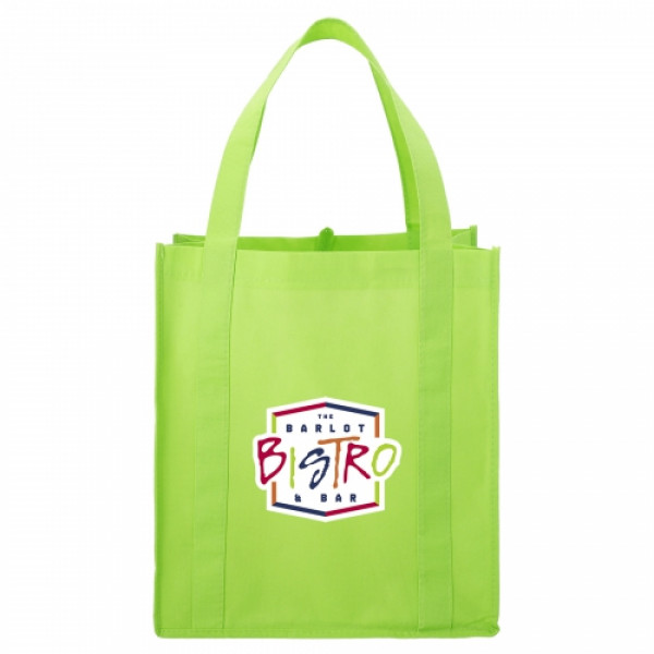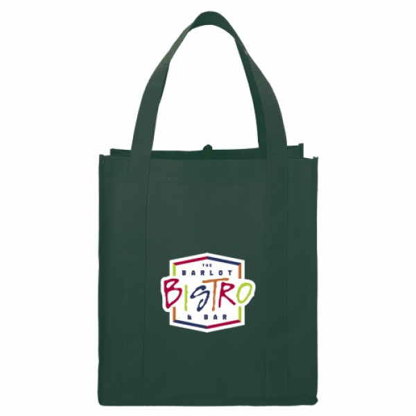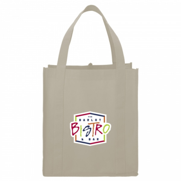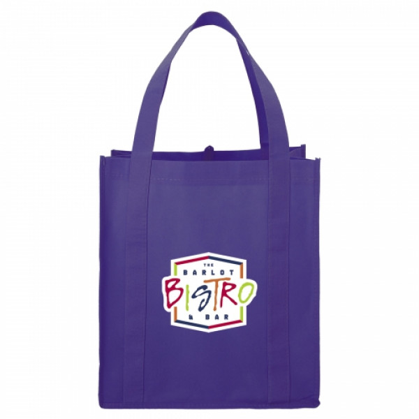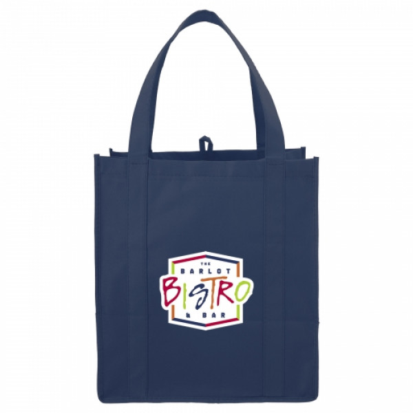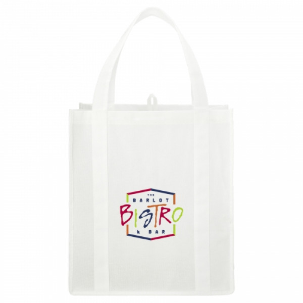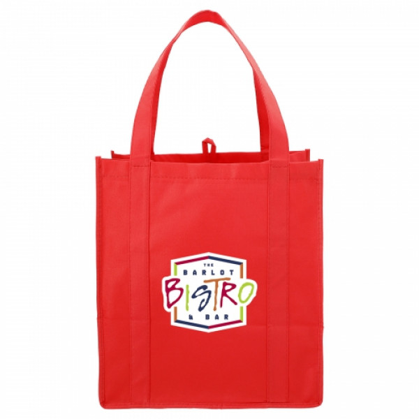The Hercules Non-Woven Grocery Tote has a large open main compartment with double 18.5 inch reinforced handles - for Olympian like strength - and a supportive bottom board. ::It's also completely reusable and a great alternative to plastic bags.