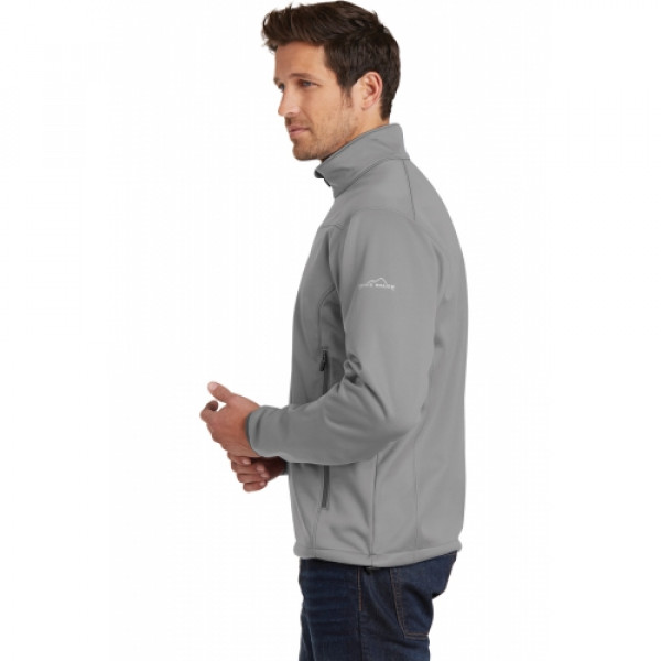 Developed to optimize performance and comfort this technical soft shell is made with highly waterproof and breathable 10K/10K fabric so it can take on active sports and perform equally as well in town. Elongated front zippered pockets double as air vents for enhanced breathability when open. 10 000MM fabric water protection rating 10 000G/M2 fabric breathability rating interior storm flap chin guard reverse coil locking zippers binding at cuffs open hem with locking drawcord. Zippered chest pocket reflective Eddie Bauer logo on left sleeve.Made of 100% polyester woven shell bonded to a water-resistant laminated film insert and 100% polyester microfleece interior.