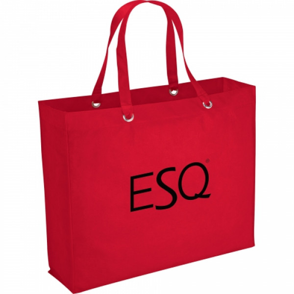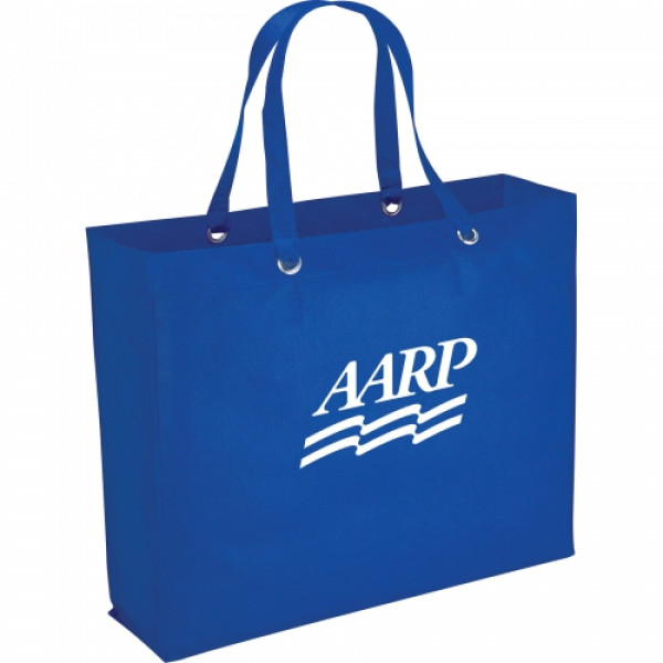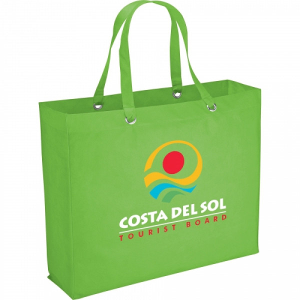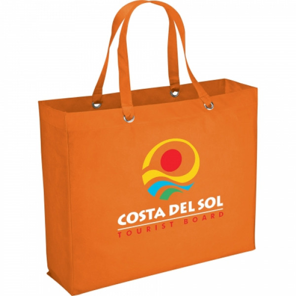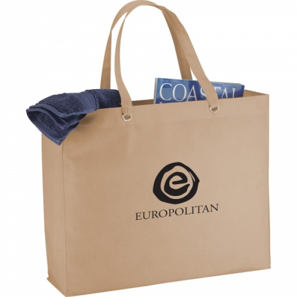 The Oak Non-Woven Shopper Tote has an open main compartment with double 23 inch handles reinforced with metal grommets. ::Completely reusable it's a great alternative to plastic bags.