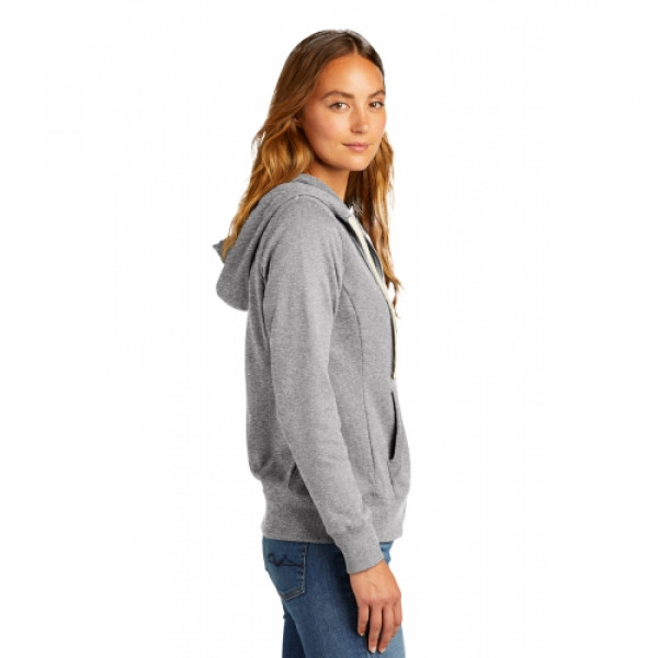 Our most sustainable fleece yet. District Re-Fleece breathes new life into reclaimed materials with its 100% recycled fabric. Affordable, comfortable and never re-dyed, it’s a fleece that just feels good.::8.1-ounce, 60% recycled cotton/40% post-consumer recycled polyester::55% recycled cotton/39% post-consumer recycled polyester/6% recycled rayon (Light Grey Heather)::Recycled natural color twill back neck tape::Recycled natural color drawcords::2x1 rib knit side panels, cuffs, pocket opening and hem::Metal YKK zipper with dyed-to-match zipper tape::Side seamed ::Undyed tear-away label::Coverstitch details throughout